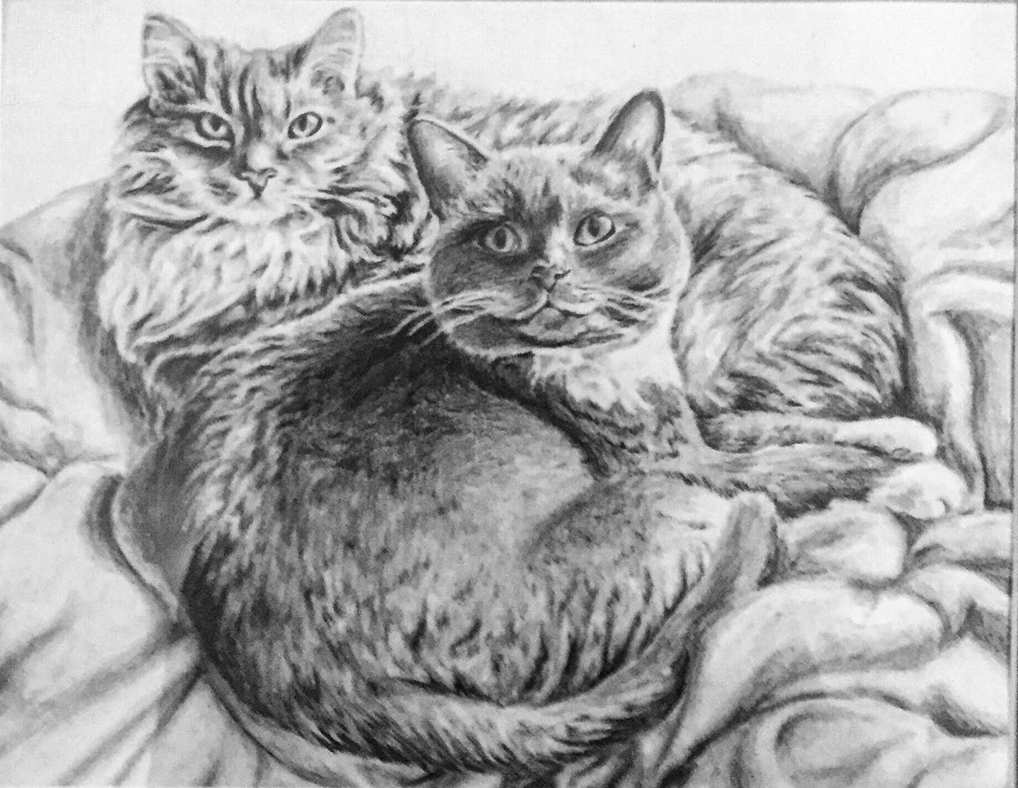 Custom pet portraits hand-drawn in graphite capture memories in a timeless way! These portraits are drawn in a highly realistic style and can be made in different sizes.